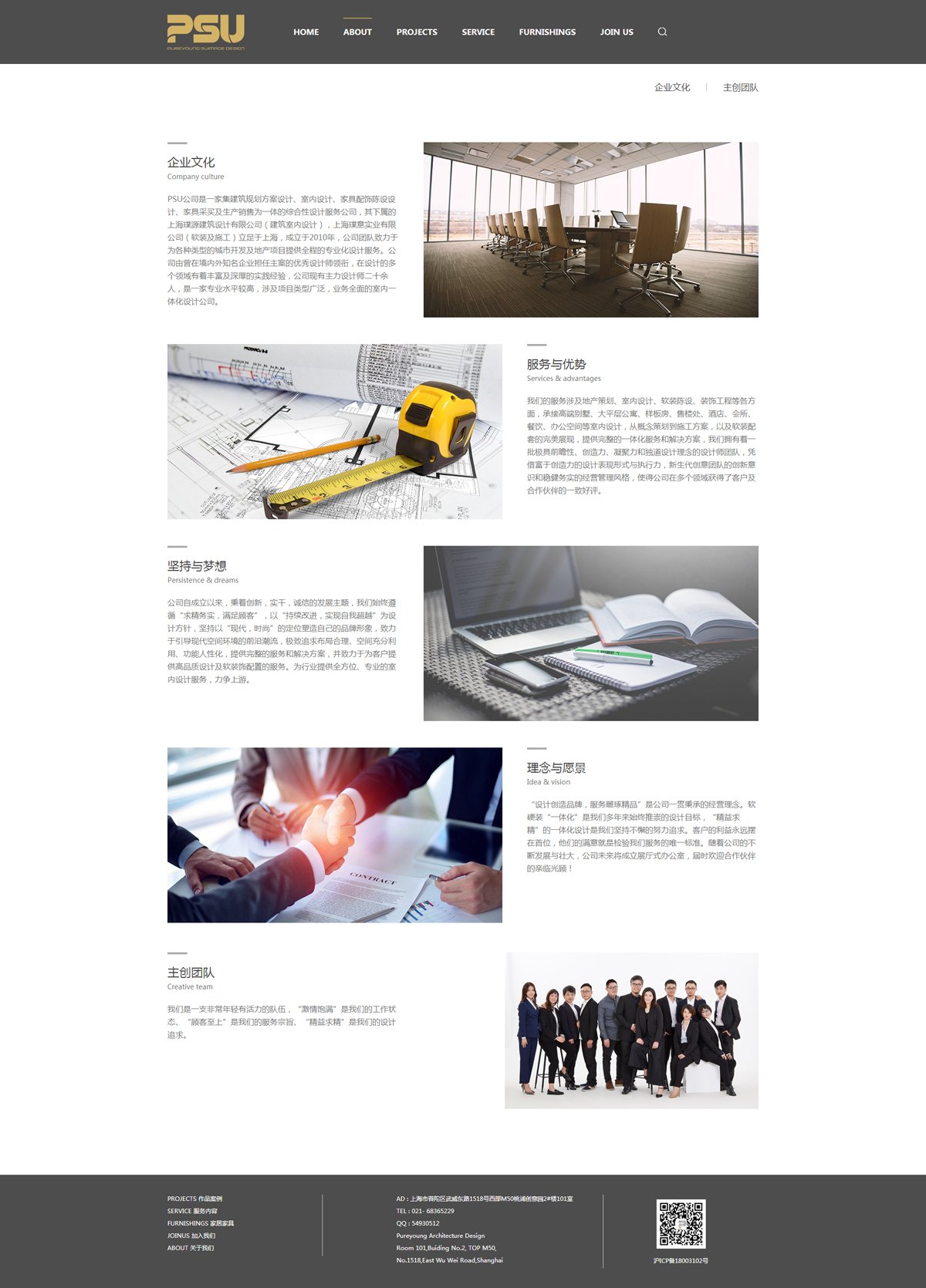 PSU公司是一家集建筑規(guī)劃方案設(shè)計(jì)、室內(nèi)設(shè)計(jì)、家具配飾陳設(shè)設(shè)計(jì)、家具采買及生產(chǎn)銷售為一體的綜合性設(shè)計(jì)服務(wù)公司,其下屬的上海璞源建筑設(shè)計(jì)有限公司(建筑室內(nèi)設(shè)計(jì)),上海璞意實(shí)業(yè)有限公司(軟裝及施工)立足于上海,成立于2010年,公司團(tuán)隊(duì)致力于為各種類型的城市開發(fā)及地產(chǎn)項(xiàng)目提供全程的專業(yè)化設(shè)計(jì)服務(wù)。公司由曾在境內(nèi)外知名企業(yè)擔(dān)任主案的優(yōu)秀設(shè)計(jì)師領(lǐng)銜,在設(shè)計(jì)的多個(gè)領(lǐng)域有著豐富及深厚的實(shí)踐經(jīng)驗(yàn),公司現(xiàn)有主力設(shè)計(jì)師二十余人,是一家專業(yè)水平較高,涉及項(xiàng)目類型廣泛,業(yè)務(wù)全面的室內(nèi)一體化設(shè)計(jì)公司。