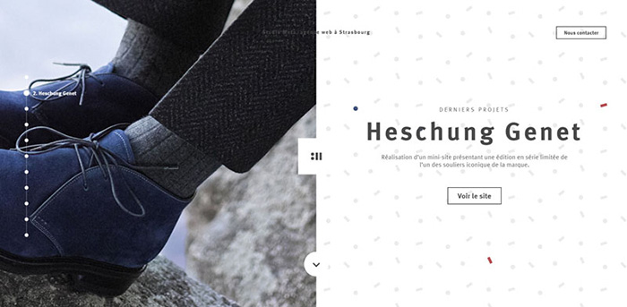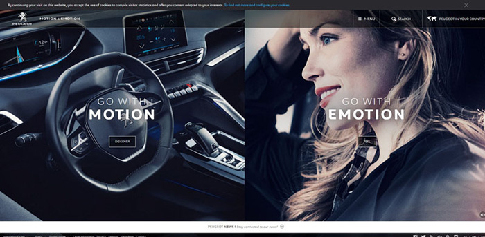 在過去幾年里,磚塊式的版塊拼組設計比較受歡迎,但在從去年開始,我們看到整屏切換效果成為了一個新的設計手法,并在今年走向流行。這種方式,實際上是使用了多個高分辨率大圖設計,并通過鼠標滾輪在屏幕中多次輪換展示。