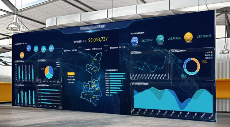 數(shù)據(jù)可視化大屏就是將數(shù)據(jù)通過可視化圖表、圖形、地圖等方式展示在大屏幕上的一種技術(shù)和方法。它的作用是通過視覺化的方式將復(fù)雜的數(shù)據(jù)信息轉(zhuǎn)化為直觀、易于理解的圖像,幫助人們更好地理解和分析數(shù)據(jù),以及做出相應(yīng)的決策。