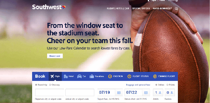 這是美國西南航空公司在一次航班線路推薦活動中所使用的大圖,它直接告訴了乘客該次航班所負責的主要業務。這幅簡單又高清的圖片給人留下的印象是,它意味著認真和良好的服務。