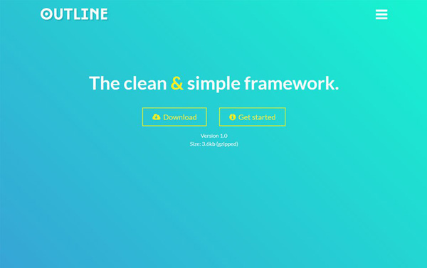 OUTLINE 是一款簡潔的Web UI 框架。網頁設計中除了大背景的留白外,就只有文字展示,采用這種設計風格也是為了更好地體現他們產品“輕量、簡約”的特征。