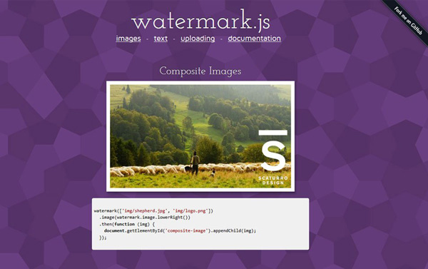 這是一款網頁圖像水印工具,同樣是采用了負空間設計,有大量的紫色背景留白區域,并將其主要內容放在中間展示。