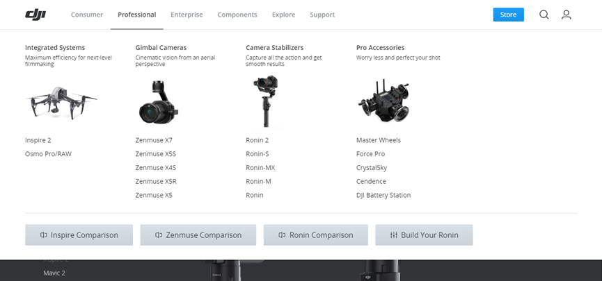 以下面的產品型網站為例,導航欄上不僅對產品進行了分類,而且鼠標展開之后,不僅加入了具體產品的圖片,對每一款產品的特性也做了簡單的介紹,既節約了用戶的時間,也有效的提升了用戶的體驗度。