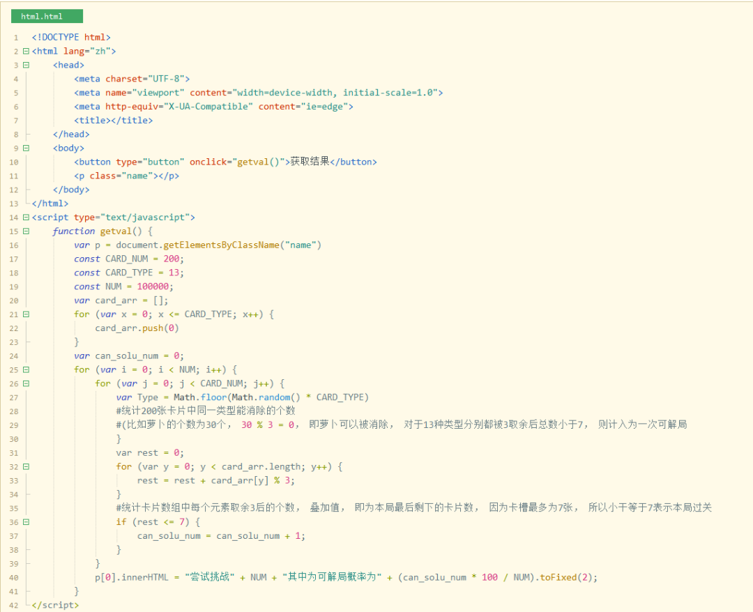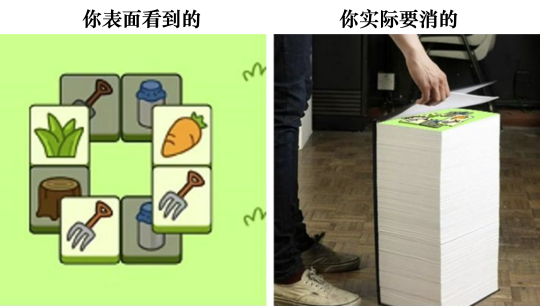 最近你玩“羊了個羊”了嗎?這個看起來平平無奇類似消消樂的小游戲,最近卻火的嚇人,上線短短幾天,就在各社交平臺的討論度就不斷攀升,不管男女老少,都抱著手機玩個不停。身邊的朋友都說,玩“羊了個羊”之后,才深刻地體會到什么叫:世上無難事,只要肯放棄,關于它的段子也是層出不窮,甚至被網友調侃為新型毒品。 見到最多的就是大家在朋友圈吐槽無法通關,雖然它只有短短的兩關,但是難度可不是簡單的遞進,而是指數飆升。這款游戲頁面最奸詐的地方之一就是層層疊疊,跟個千層餅似的,有時候你看著快消完了,掀開一看底下無窮無盡。 第一關都能過,傻瓜式的操作,到了第二關,可是要把人的腦袋都摳破,那么為什么你會一直過不了“羊了個羊”的第二關呢?今天我們就來簡單分析一下。 第二關一共有200張卡片,一般來說有13種類型,假設第二關的每張卡片和布局都是隨機生成的,當你玩的越往后,越是會出現總是三缺一的情況,你能看到的牌,和你槽里的牌,一定是不一樣的。 我們用代碼模擬一下這個過程,因為“羊了個羊”挑戰人數較多,我們用一個比較大的數據來模擬,可以讓概率分布更加穩定,假設基數為100000個,我們來進行100000次模擬。 同種卡片3個消除,剩下如果完全消除不了的卡片少于7張,即算通關,而其余情況都無法通過,即無解。 很多人在玩這個游戲的時候,以為是策略和操作出現了問題,所以才不停的失敗重來,然而結論卻是,就算你聰慧過人,有一雙洞察一切的雙眼,所有能消除的卡片都被你成功消除了,你仍然只有2.97%的概率,能通關。 當你日夜奮戰在“羊了個羊”時,這個游戲真正目的也就達到了——“廣告播放器”,他們讓你過不了關,實際上是想讓你為了延長游戲時間看廣告,為他們賺取巨額流量的廣告費。 所以看了上述分析,你還想玩嗎?人生有的時候也像羊了個羊,看似只有簡單的十幾種花色重疊消除,實則困難重重,學會及時止損轉移注意力,遠離“羊了個羊”等等一切讓你的付出沒有回報的東西。