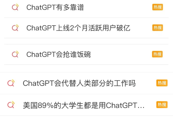 有關ChatGPT的多個話題也頻頻登上熱搜!