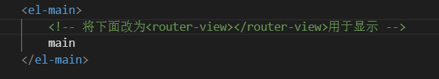 3.在需要展現(xiàn)頁面的位置添加<router-view>標簽,用于展示頁面。這里為了在main中展現(xiàn),所以需要將<router-view>標簽設(shè)置在<el-main>中,如下圖: