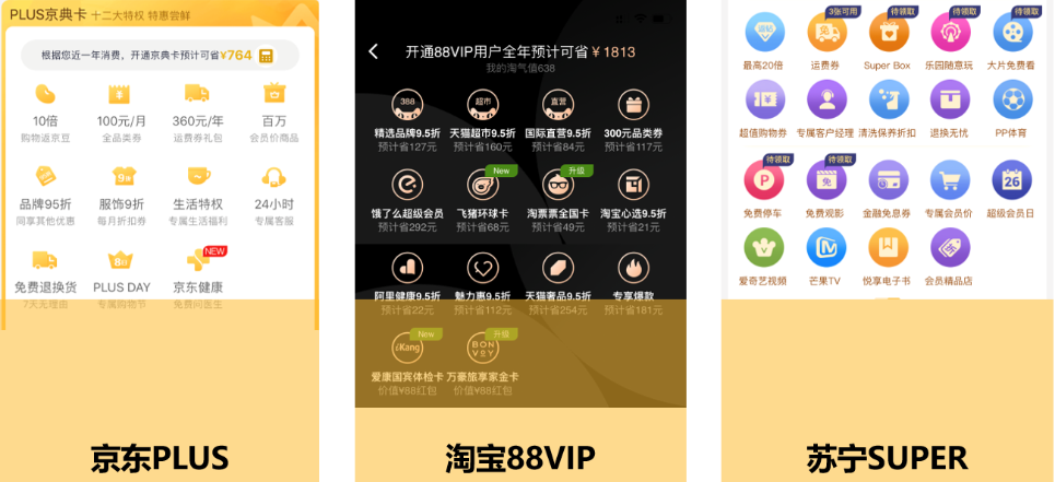 分別為以下幾種:平臺生態(tài)——定價(jià)策略自上而下,平臺內(nèi)部各業(yè)務(wù)線共同分擔(dān)成本)、雙卡聯(lián)動——兩個規(guī)模差不多的產(chǎn)品推出聯(lián)合會員,目的是提升權(quán)益價(jià)值感,吸引更多會員,產(chǎn)品間互相導(dǎo)流,實(shí)現(xiàn)共贏、一大一小——大平臺能獲取更多權(quán)益,小平臺則以較低成本獲得高價(jià)值用戶。小平臺用權(quán)益換取大平臺的流量。
